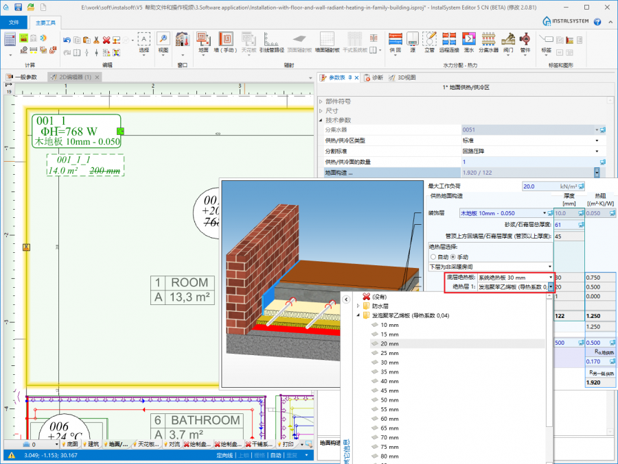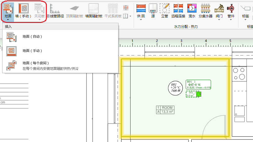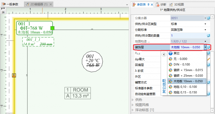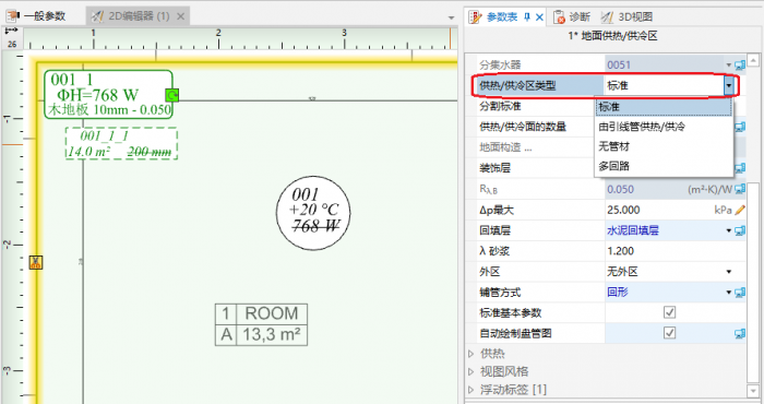 14. 交互式辐射系统计算 - 修改供热地面/墙面的结构。