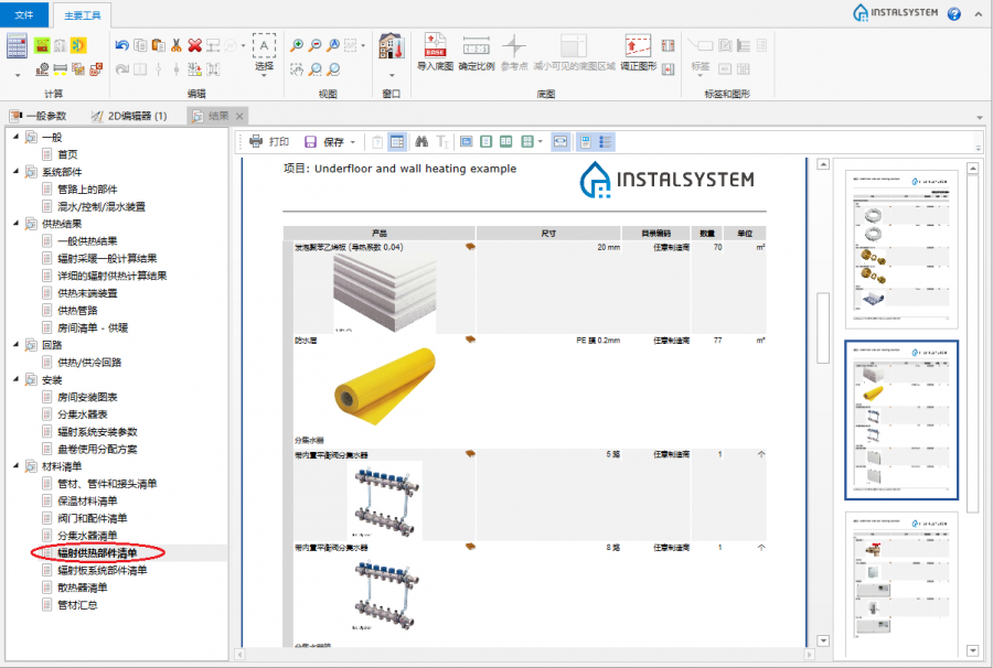 | 所需模块 | InstalSystem 基本模块 供热系统 5 辐射回路系统 5 |