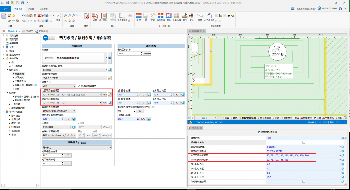 2. 最大长度 - 允许的管间距 - -将影响辐射供热表面的平均温度。