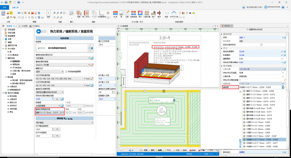 4. 绝热层 - 房间装饰层 的选择 - 将影响辐射面供热的效率和辐射面温度分布的均匀性。