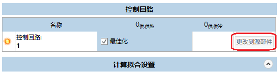 - 进入一般参数 窗口, 在供热/供冷系统计算/源 中,插入源,并使用"更改为图形部件" 命令。 从工具栏中选择的源 也许会使用一不同的供水温度值,因为该值来自本项目中省缺的部件的设定值。