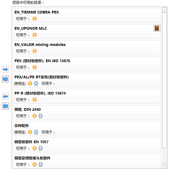 当进行项目设计时,系统中的部件,仅可使用为项目选定的目录中的产品。